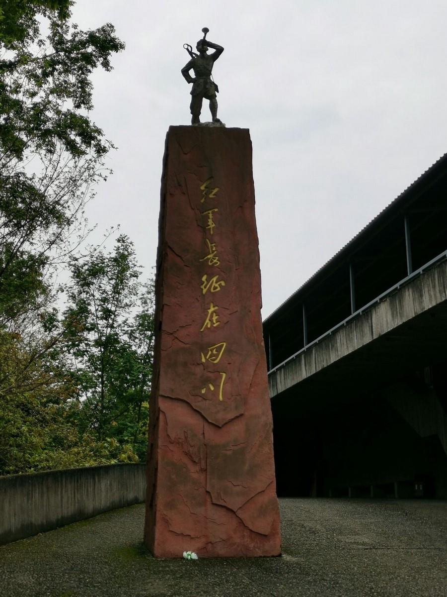 “红军长征在四川”一块高耸的石碑铭刻着大字,馆內一张张画面定格下了红军四渡赤水、过草地、翻雪山、飞夺泸定桥等场景。