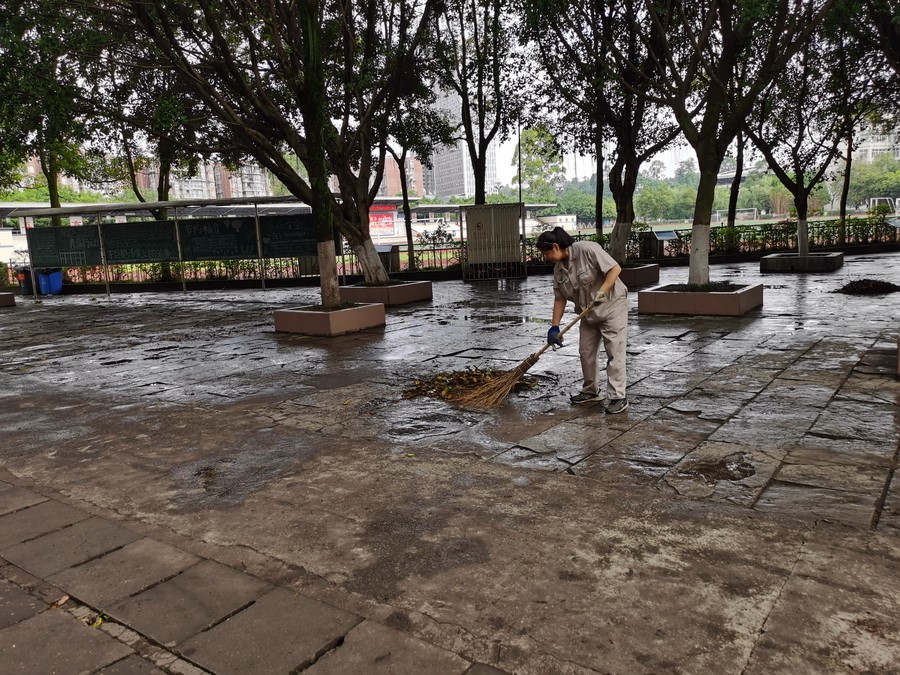 迅速出击,逆风而行,用心履责,众志成城,从暴雨骤降的应急抢险到雨后校园环境恢复,一切都在紧张有序地进行,后勤员工密切关注雨情,及时妥善处置,始终坚守岗位,织起了一张严密的工作网络,确保将暴雨带来的危害和损失降到了最低,保障了校园师生安全和学校财产安全,用实际行动践行了服务师生的初心。