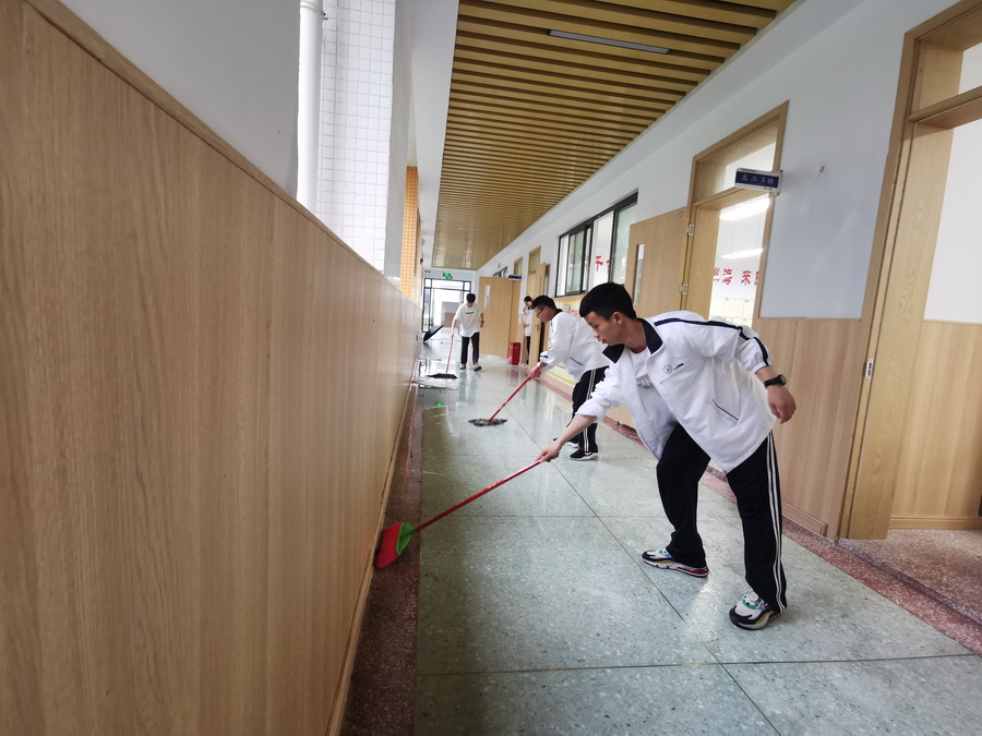 各班学生也在学校安排和班主任组织下积极行动,迅速清理了过道和班级内卫生。