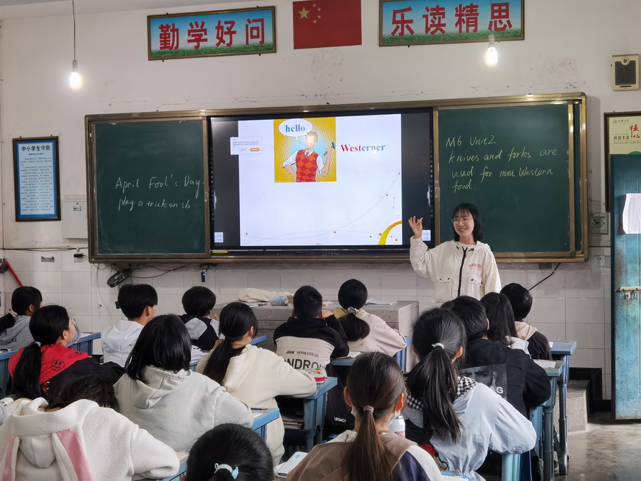 在这次支教过程中,孩子们给我的触动很大。英语在他们眼里是很难的,特别是口语能力很差。学生们基础比较弱,我在备课时,尽量使内容简单易懂,有趣不枯燥。在准备这节阅读课时,我在PPT上放了不同的内容来吸引他们。课前课代表组织全班读英语单词,声音洪亮,认真整齐。在课堂上,孩子们积极配合,互动。提出一个问题,都会有很多孩子回应。也许答案不一致或有差错,但是每一个声音都是对这个问题的思考。我在他们的眼睛里能看到光。能看到他们对学习的认真和对知识的渴求。支教是短暂的,但是回忆是珍贵的,希望短短的支教之旅能对她们有一定的帮助。祝愿这群孩子们未来无限好!