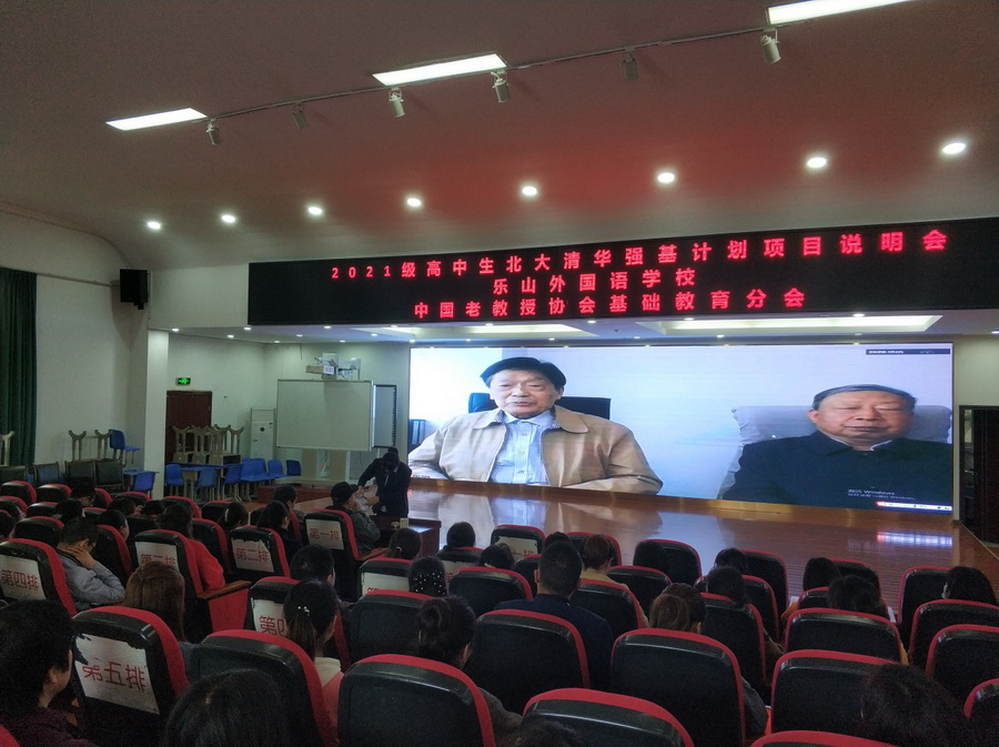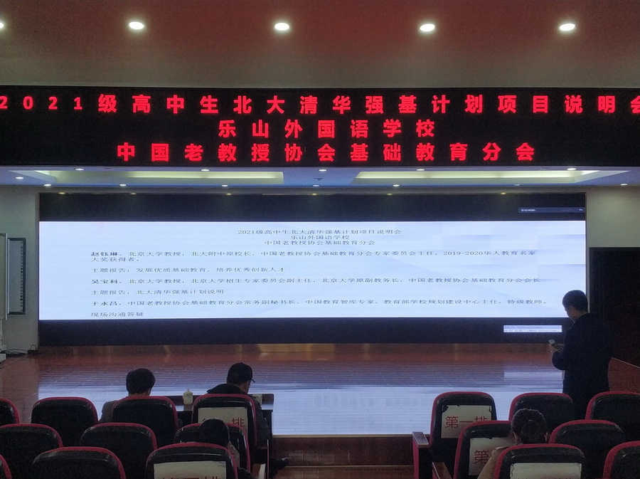 “鹰击天风壮,鹏飞海浪春。” 为激发乐外学子学习潜能和动力,助力学子圆梦顶尖学府, 4月19日下午,乐山外国语学校隆重召开了北大清华强基计划项目说明会。百余名特优生家长赴会聆听了北京大学专家团带来的北大清华强基计划项目讲座,副校长余辉主持了本次讲座。