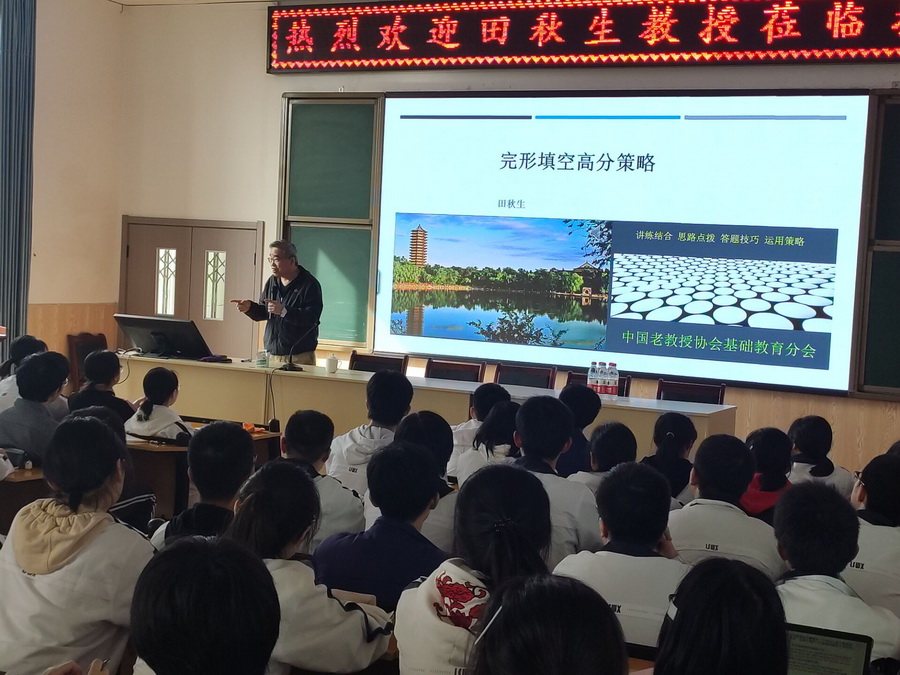 2021年4月16日,中国老教授协会基础教育分会田秋生教授莅临乐山外国语学校指导高考英语完形填空高分策略,我校副校长余辉、英语教师及高三部分学生参加学习培训。