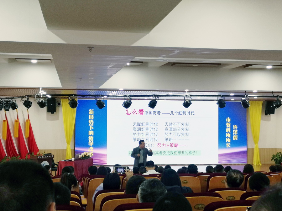 知之愈明,则行之愈笃;行之愈笃,则言之愈深。乐山教育科学研究所许泽能所长以一场《高考引导下的教学改革》的专题讲座将培训推向了高潮。
