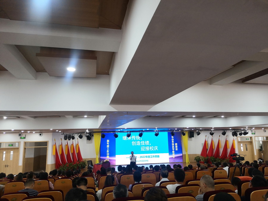 欧校长提出2021-2022年度“继承传统、创造佳绩、迎接校庆”的三大工作中心。他首先梳理并诠释了外校的传统内涵,并带领全体教师重温了学校理念、校训、育人目标、教师誓言、学生誓言。