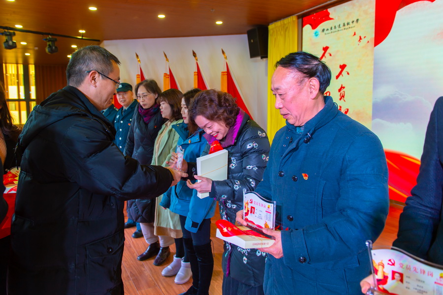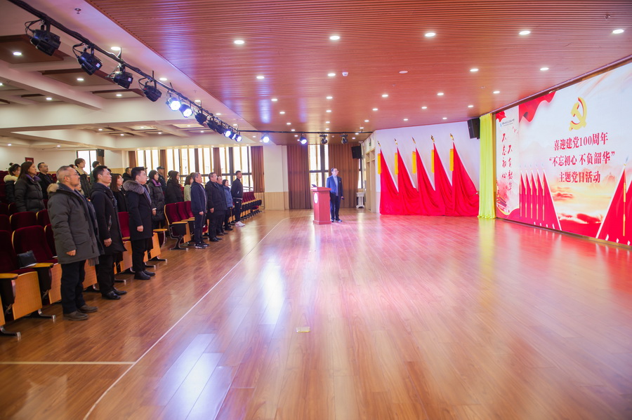 为了继承和发扬党的优良传统,迎接中国共产党成立100周年,力促我校全体党员牢固树立“不忘初心、牢记使命”意识,2021年1月19日,乐山立志达高级中学(乐山外国语学校滟澜洲校区)在北辰楼学术报告厅召开了喜迎建党100周年“不忘初心 不负韶华”主题党日活动。本次活动由高中支部书记、德育部副部长邓晓宇主持。立事达集团党委副书记郑小陵、立事达集团党委副书记、四川立事达教育集团总经理张必友、开发公司书记邓永旭、乐山外国语学校党总支书记、校长欧建设、乐山外国语学校党总支副书记周静婷、乐山立志达高级中学执行校长谢鹰及我校全体党员、入党积极分子参加了本次活动。