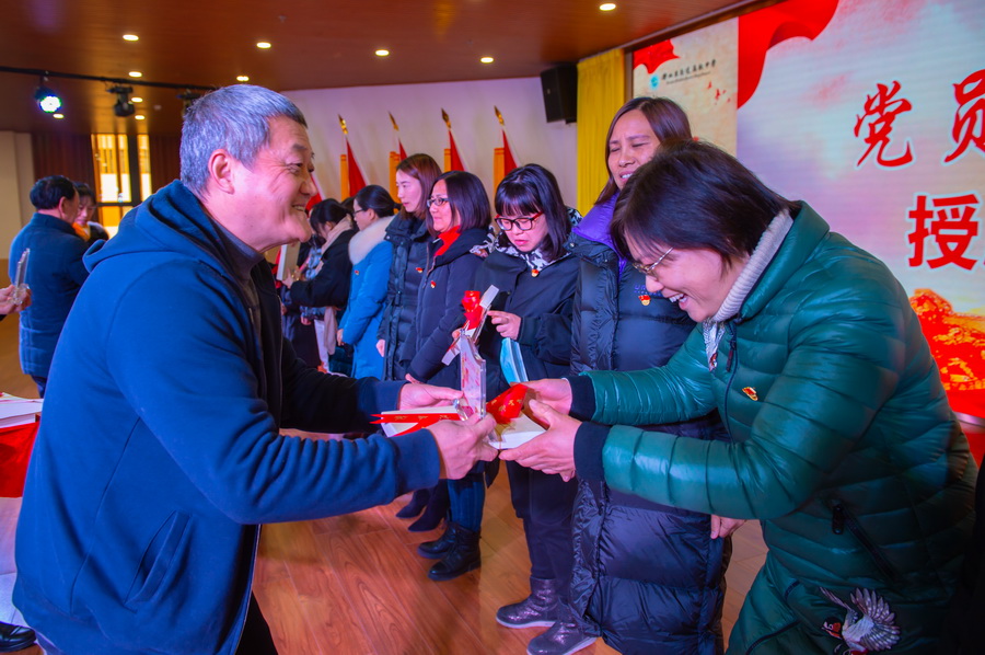 宣誓结束后,周静婷副书记以《敢于担当激发新追求,勇于奉献树立新作风》为主题,为全体党员讲授主题党课。她以建设共产党员示范岗为切入点,从戴党徽、亮身份,放岗牌、作表率为起点,要求每个党员用心点亮责任,在岗一分钟、奉献六十秒,希望大家能够继续坚守初心,积极主动作为,勇于创新,为学校的发展建言献策。