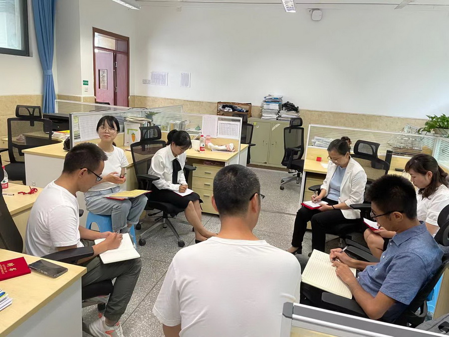 “研导委”徐雪梅老师提出备考应研究高考政策、高考评价体系、研究近几年高考真题并对比真题中知识点与知识点的关系,知识点与教材的关系,知识点与化学核心素养、关键能力的关系;分享了如何更高效的进行复习,通过一次备课发现学生问题再进行二次甚至多次备课解决学生困惑。“中心组成员”陈梦霞老师分享了我校高三一轮的复习计划,周考试卷的制作方法以及一轮复习课的六步教学法。均受到与会老师们的高度评价。