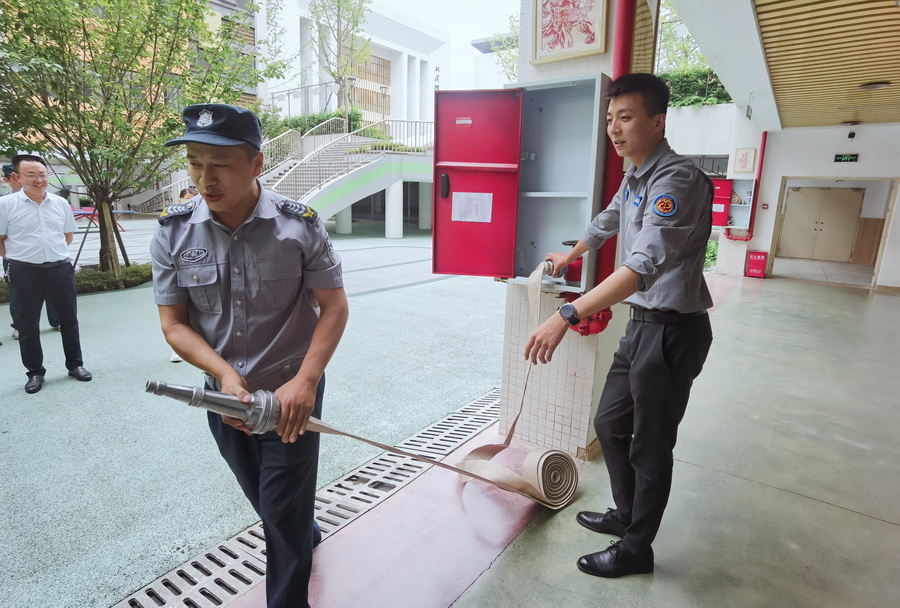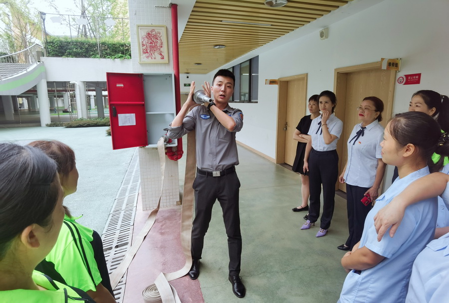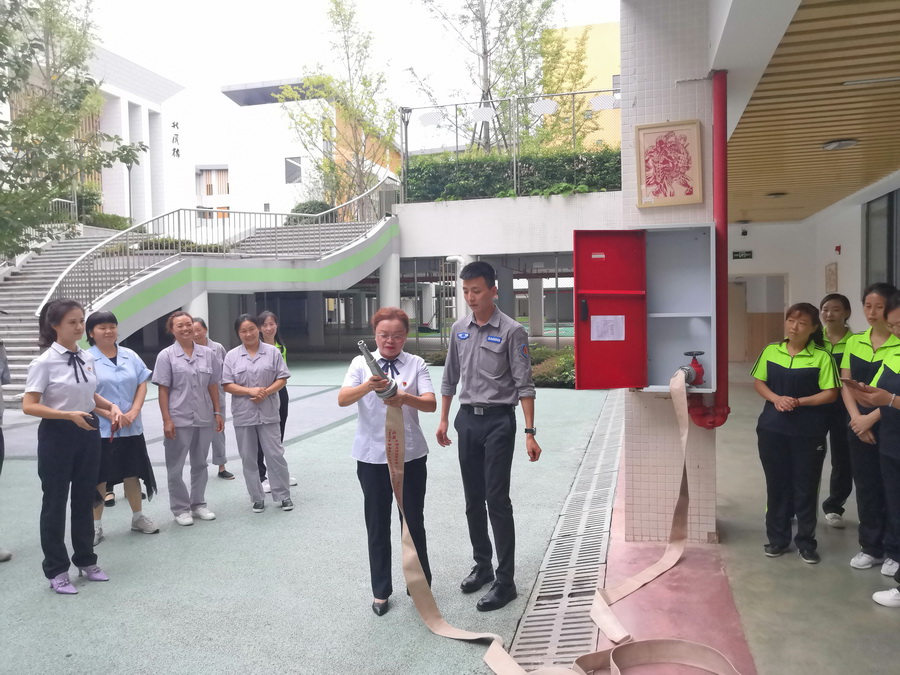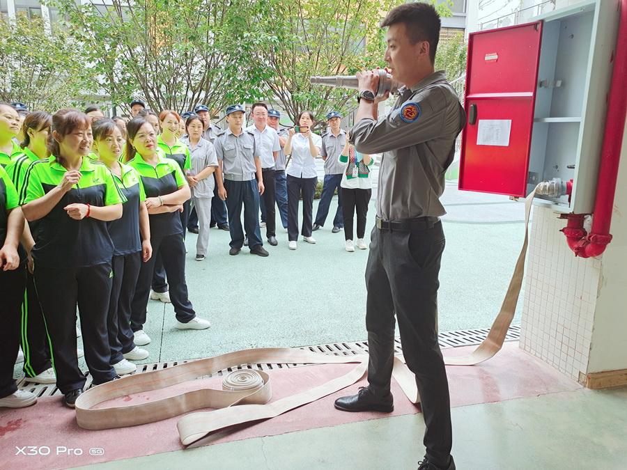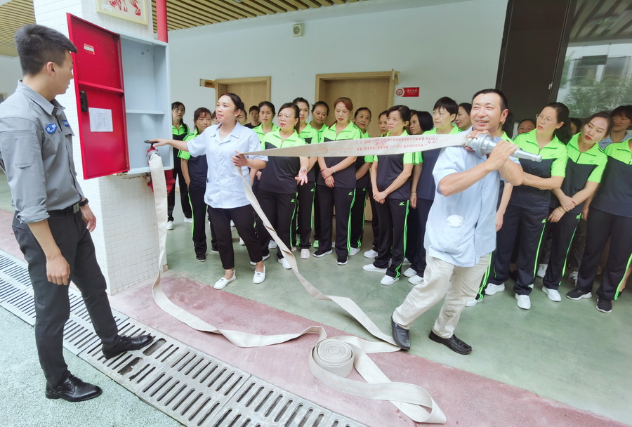殷教官讲解了消火栓的使用方法,并指导员工进行了实际操作演练。