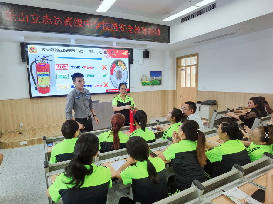 为进一步深化消防减灾意识,提高学校消防应急自救能力,保证在火灾时最大限度地减轻灾害造成的损失。2021年9月16日,乐山立志达高级中学邀请四川省蜀泰君安消防技术咨询有限公司殷教官为后勤员工上了一堂贴近实际、通俗易懂的消防课。