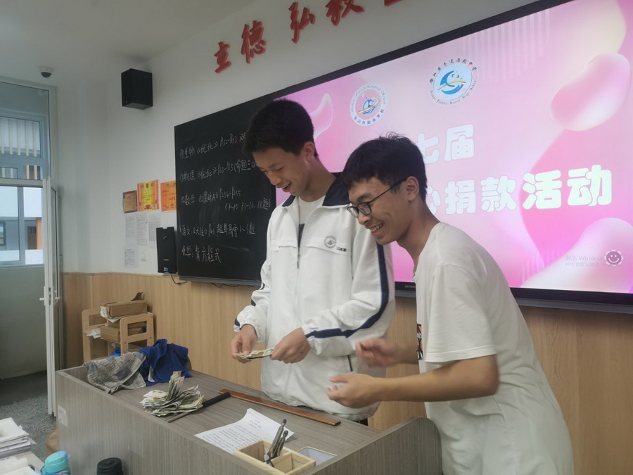 今年是我国完成第一个百年计划的重要年份,习近平总书记宣布了脱贫攻坚战的胜利,宣告了我国已全面建成小康社会。虽然绝对贫困已经消灭,但相对贫困的情况依旧存在。我校积极相应党和国家的号召,让爱永续,让温情洒满整个校园。爱心助学捐款活动是我校的一项优良传统,今年已是第十七个年头。一滴水也许力量薄弱,微不足道,但只要齐心协力,终能形成涓涓细流,汇成汪洋大海。就像同学们的颗颗爱心,定会点燃希望,播撒人间!