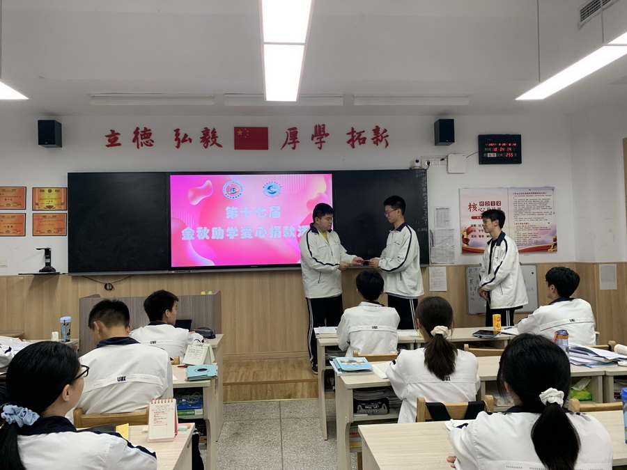 为了让爱心延续,我们全校师生持续为向生活拮据、品学兼优的学生献出爱心,德育部、党工部和校团委于9月17日—9月26日发起了爱心捐款活动倡议,得到了全校师生的热情响应。9月26日学生返校当晚,各班举行了“爱心传递·真情永驻”主题班会。班主任们通过不同的活动形式,来号召同学们奉献出自己的爱心。