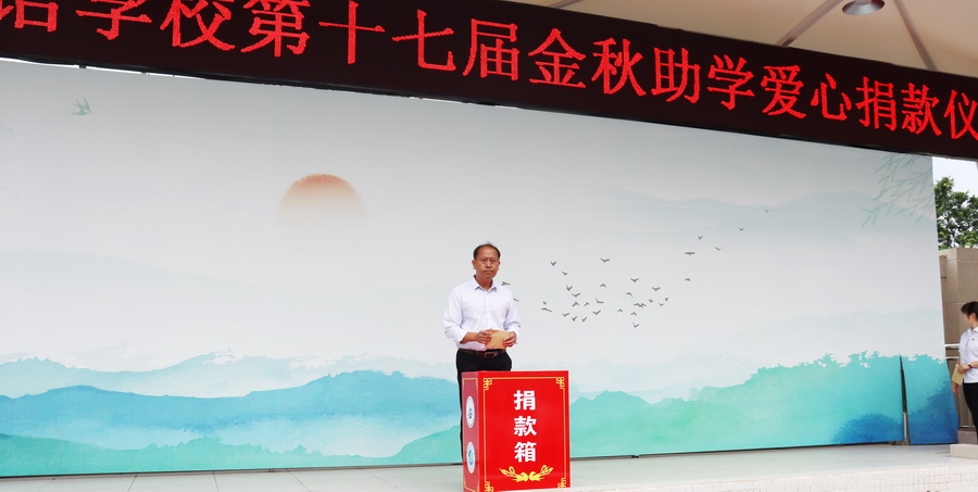 9月27日,升旗仪式上,伴随着飘扬的五星红旗,学校进行了第十七届爱心助学捐款仪式。全校师生友爱相助,搭建起了最温情、最暖心的桥梁,为校内品学兼优的寒门学子保驾护航,让他们在求学路上不断前进,成功到达彼岸。