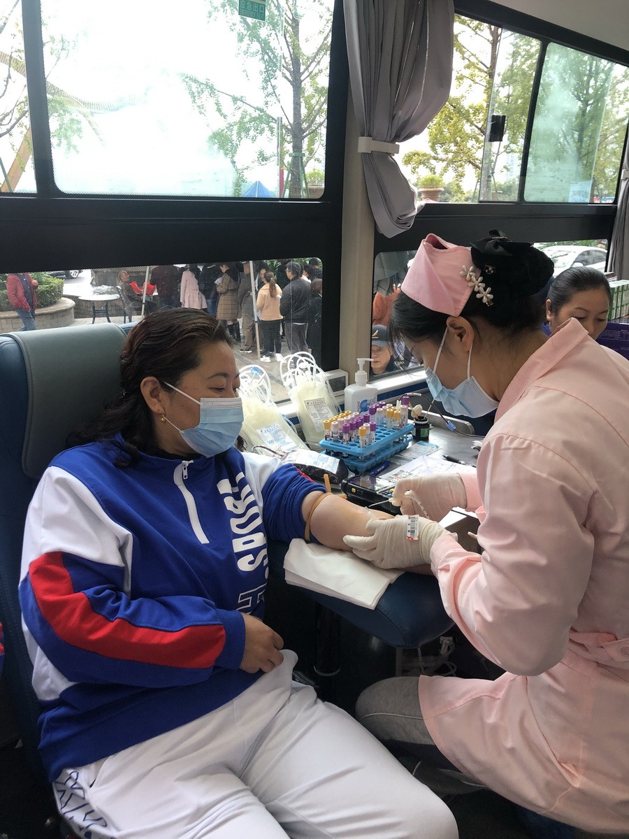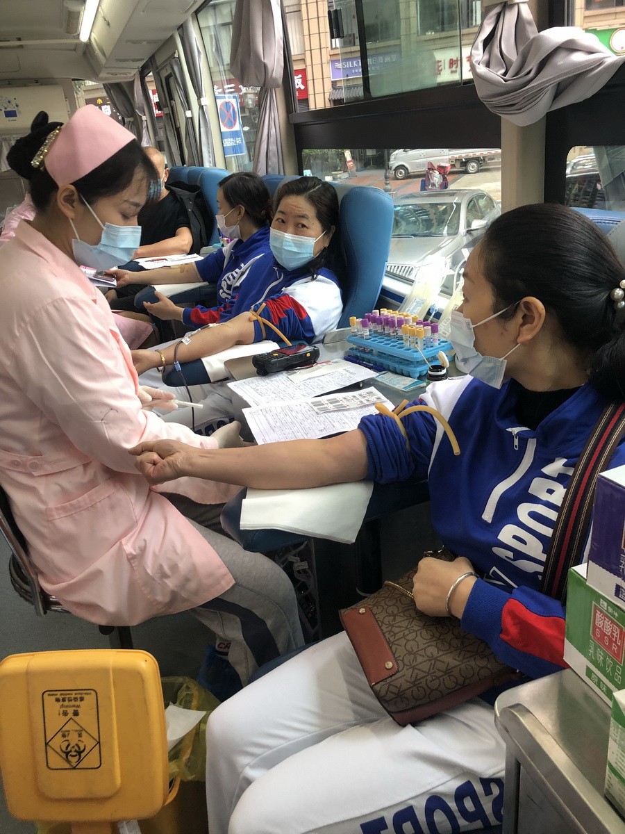献血现场,教职工们有序填表、体检、化验、等候,每一位献血者在医护人员的指引下完成了献血。