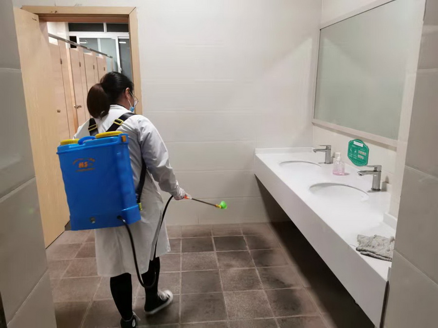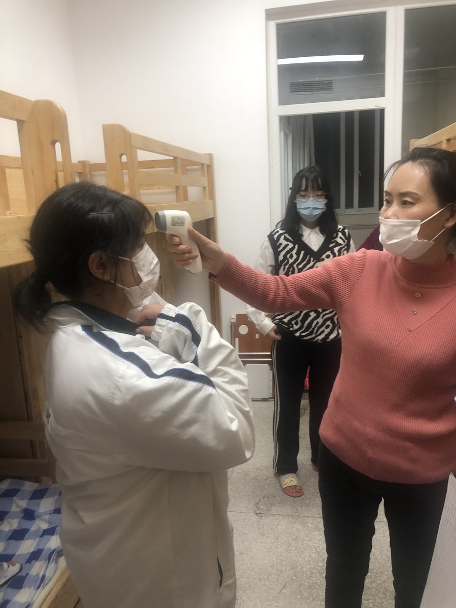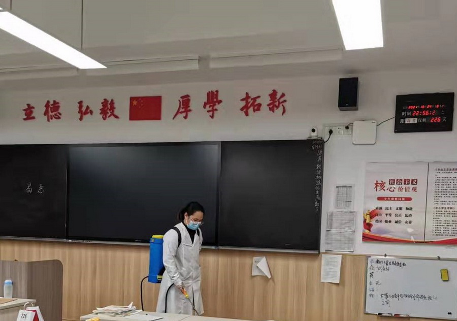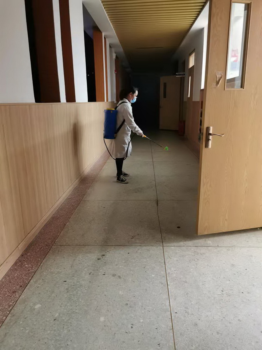 后勤兵分两路,生活老师布置好了隔离寝室。校医务室对教学区进行了全面消毒。