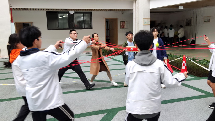 看,这边篮球场上,有教师参与的趣味活动,方式新颖、吸人眼球;看,那边架空层下,丰富多彩的社团活动积极开展,心理中心的“击鼓颠球”“纵横天下”“合理宣泄”等游戏,不仅丰富了运动会的表现形式,也让同学们繁重的学习生活得以放松。