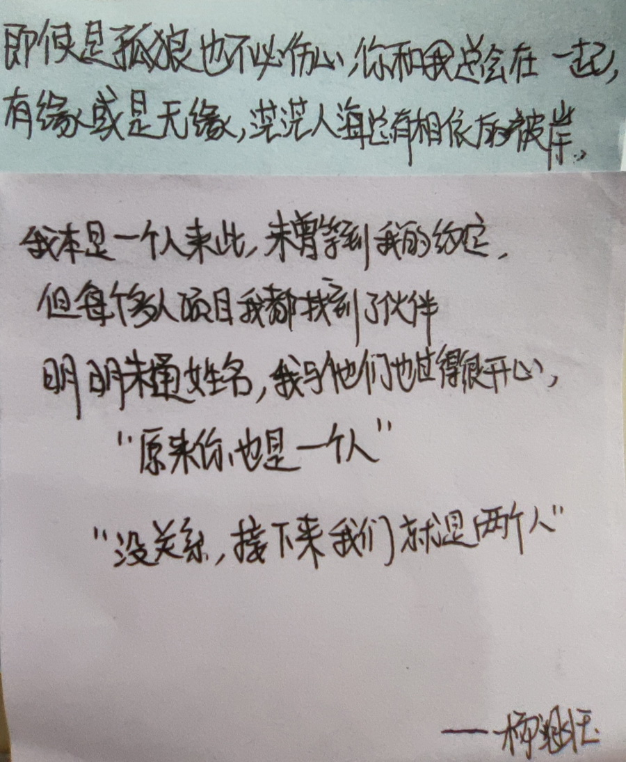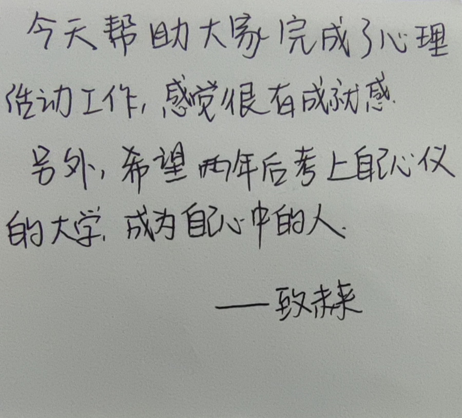 书写具有疗愈作用,快速书写,是力量的呈现,也是能量的流动;积极书写,积极表达,让文字呈现想法,给予自己与他人支持和鼓励。风铃笺上写下自己的祝福与希望,让风吹向校园每一个角落;活动后的感受与体验,内心的笃定与坚守,用文字表达,为整个活动的参与画上圆满句号。