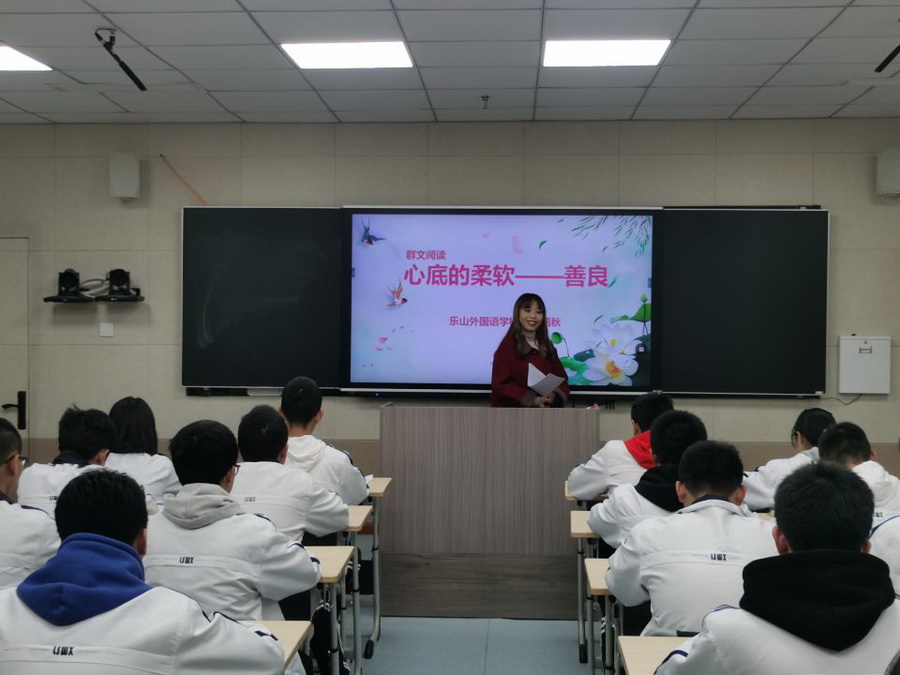 2021年10月27日下午,乐山外国语学校“群文阅读课堂教学言语实践课型的实践研究”中期研讨会在学校行政楼三楼会议室举行。