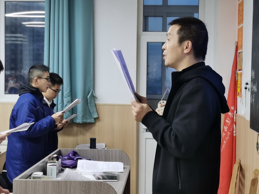7点15分,王老师所在班级的“激情早读”总是比其他班级要稍早一些。他常说古人不曾欺骗我们,“一日不读书,胸臆无佳想;一月不读书,耳目失精爽”。他希望“激情晨读”可以真正成为吹响学生每日学习的第一声号角。