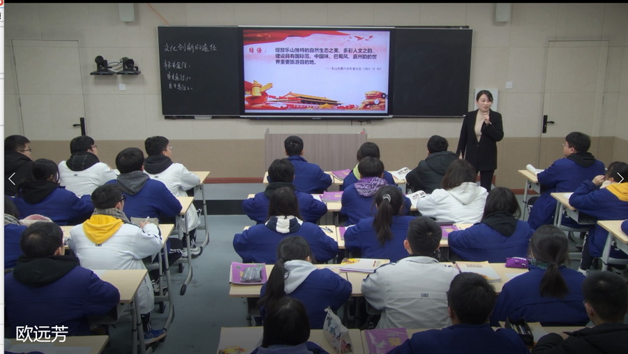 一号赛手,文综组政治老师欧远芳与高2023届5班同学们一起合作探究了《文化创新的途径》。以身边热点素材《只有峨眉山》,创设四个情景,通过小组合作、探究“是什么?”→“为什么?”→“怎么办?”水到渠成探究总结、归纳如何进行文化创新。教师富有感染力,价值引领到位。