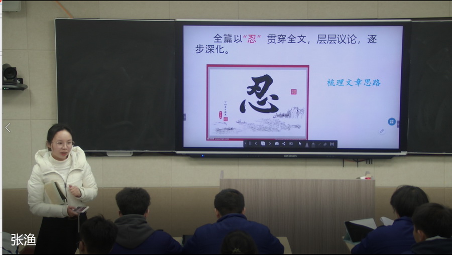 七号赛手,语文组老师张渔跟高2023届13班孩子们在文言天地里剖析《留侯论》。张老师带领大家,从诵读开篇,娓娓道来。课堂以“忍”字为主线,通过初读文章、疏通字词,再读文章、串联晓义,通读全文、概括分析,层层深入,人物赏析、情怀培养、整体推进清晰高效。