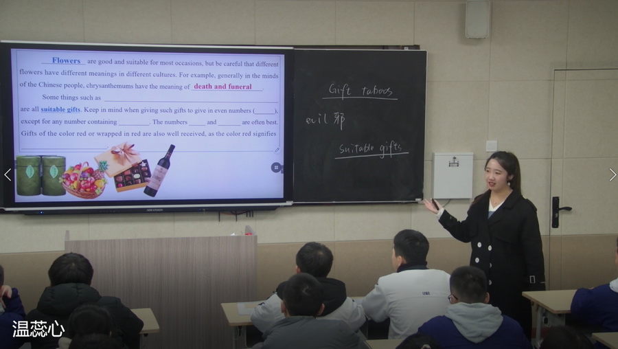 八号赛手,英语组老师温蕊心同2023届9班同学们在“感恩节”这天,共话《B4M3 listening——Gift-giving Customs》。利用“感恩节”在美国、欧洲、印度、日本、印度尼西亚、南非等地的送礼习俗各异的听力材料与精巧导学案,解密各地独特的赠礼传统,落实英语听-说-读-写的能力训练。