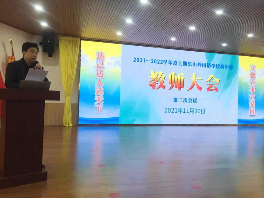 我校高中部第三次教师大会于2021年11月30日召开,会议主题围绕信息技术应用能力提升展开。