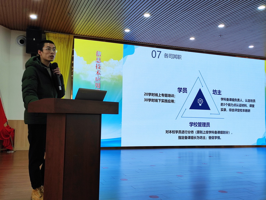 依据《教育部关于实施全国中小学教师信息技术应用能力提升工程2.0的意见》(教师〔2019〕1号)精神,按照《关于印发四川省中小学教师信息技术应用能力提升工程2.0实施方案的通知》(川教函〔2020〕266号)的相关工作要求,为提高教师信息技术应用水平,积极开展教育教学,达到信息技术和教学的深度融合,我校启动了“信息技术应用能力提升工程2.0校级培训暨开班仪式”。