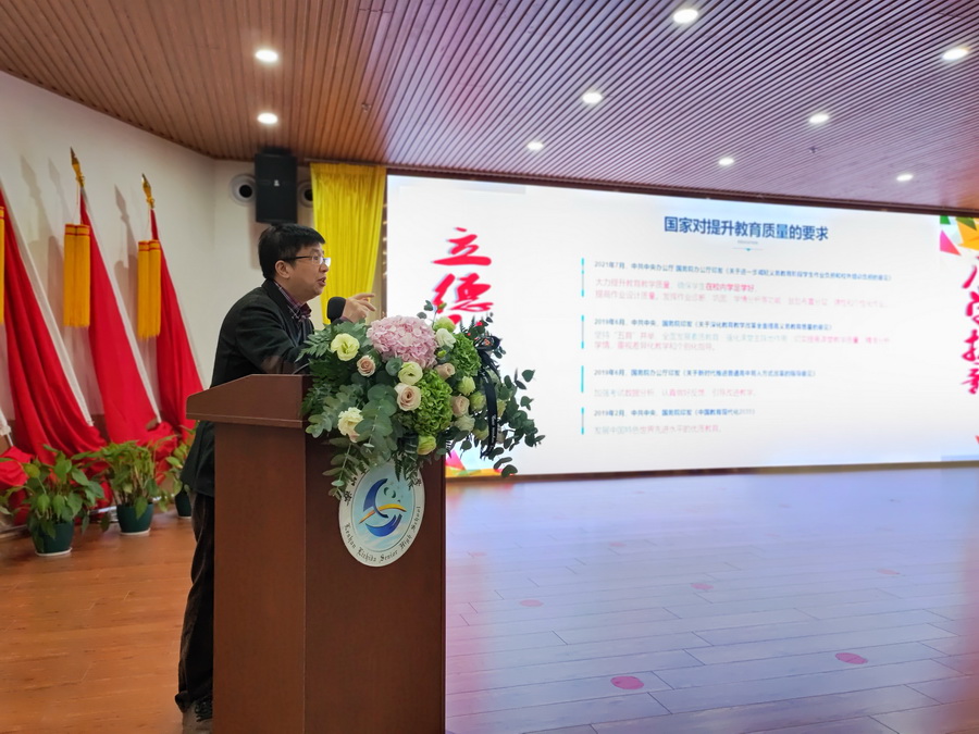 2021年12月10日—14日,乐山市优秀教育人才第一期培训班在乐山市立志达高级中学北辰楼4楼学术报告厅隆重举行,中国教育学会评价办主任、北师大系统科学学院教育规划与教育治理研究中心执行主任秦建平,市委教育工委专职副书记、市教育局党组成员刘友军出席开班式。市教育局四级调研员、人事教师科科长郑雪卉主持开班式。市教科所所长许泽能作专题解读。