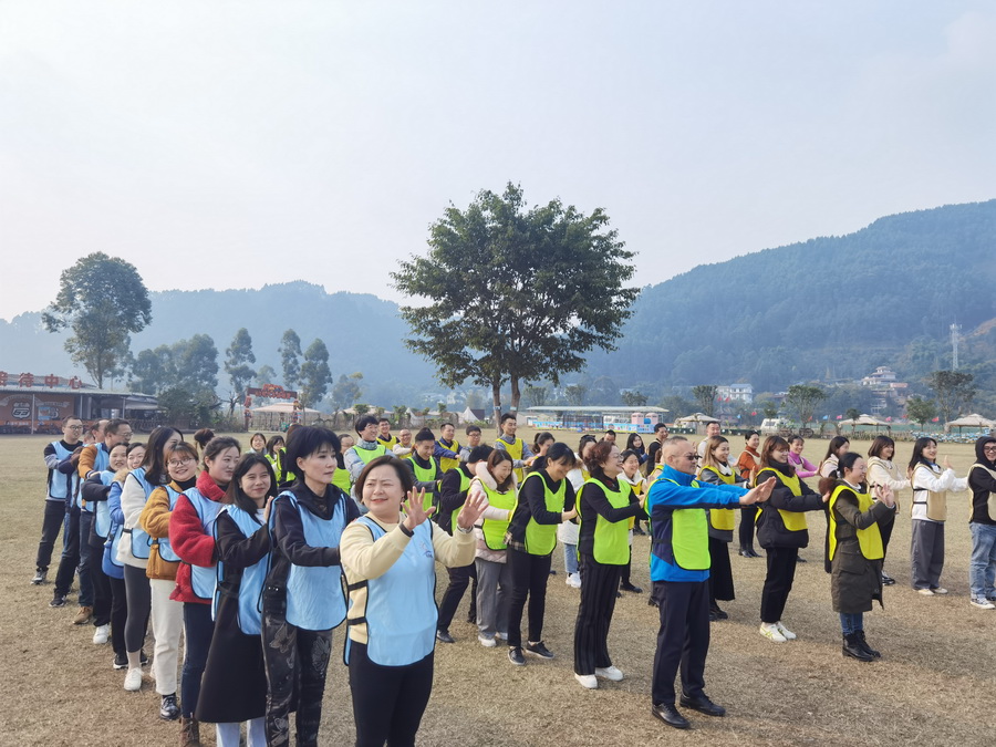 活动伊始,暖身活动揉肩、捶背一个简单的动作向彼此传递温暖,在欢声笑语中老师将疲惫和压力释放在鸟语花香的依山傍水之中。