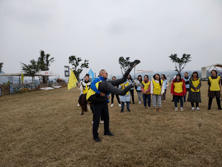 接下来的团队分组活动,从定队名、口号、队旗制作到队形编排;从舞蹈技能展示到“喊数抱团”、倒拔“垂杨柳”等游戏,充分调动了老师们通力合作、默契协作的团队意识。