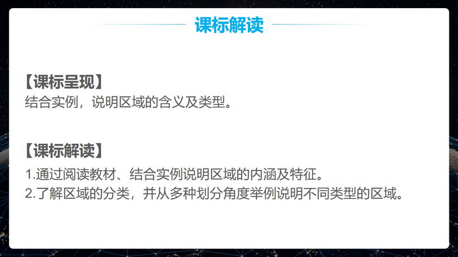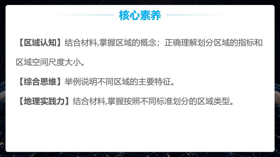本节内容结合新课程标准的要求主要从两个方面对区域进行讲解。首先介绍区域的特征,通过了解区域的特征,能更好地把握区域的概念。其次介绍不同类型不同空间尺度的区域,通过活动探究,结合案例分析,帮助学生深层次理解区域。教学设计以自主探究、合作探究、思考讨论等形式充分调动学生的积极性和主观能动性,在解决问题的过程中培养学生的区域认知、综合思维等核心素养。本节内容为后面章节的学习打下基础,也能帮助学生培养分析问题、解决问题的能力。