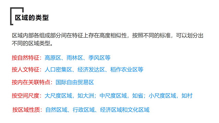 探究:判断相关区域的范围是否固定不变,体现了区域的那个特点?