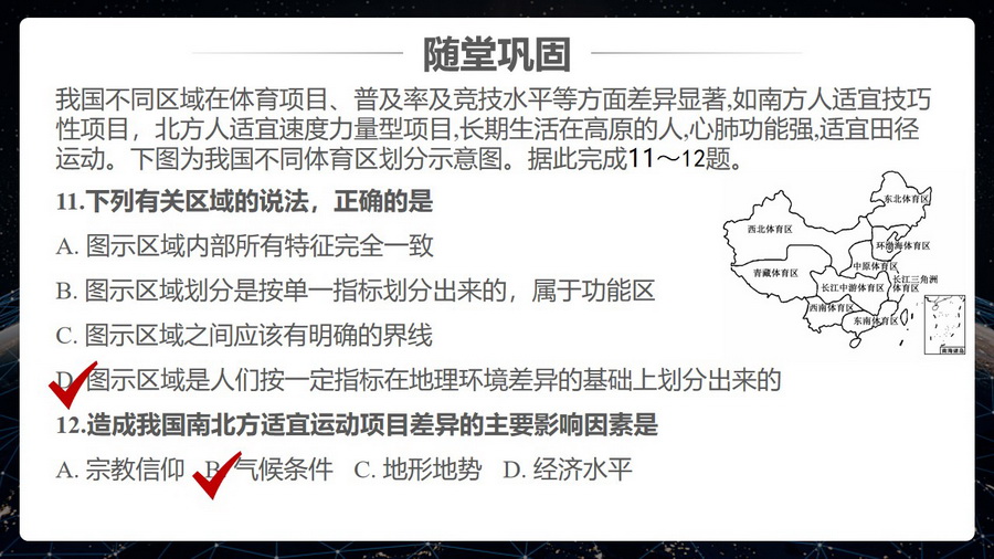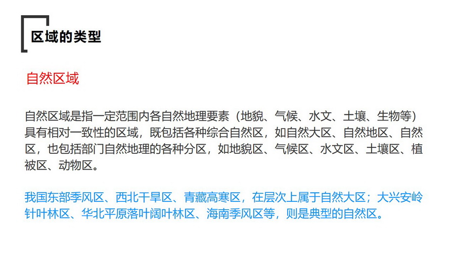 探究:结合自然区域的概念,让学生判断自己的家乡属于哪个自然大区和哪个自然区域,并描述其自然地理特征。