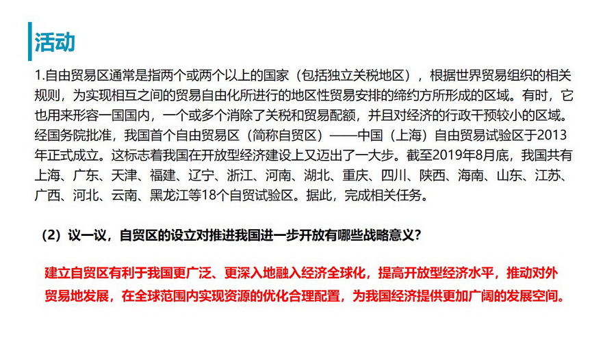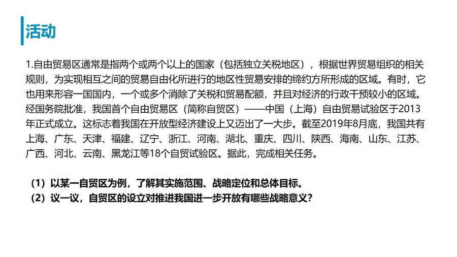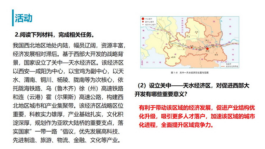 教材活动:了解相关经济区域特点及其划分意义。