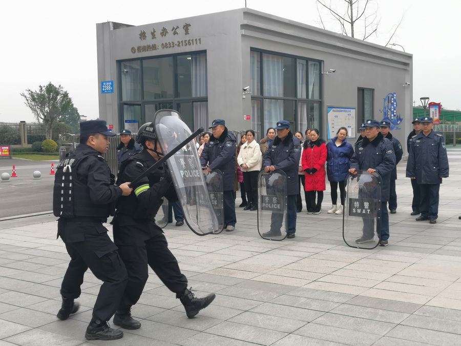 ——乐山立志达高级中学特邀特巡警支队为后勤员工做现场培训
