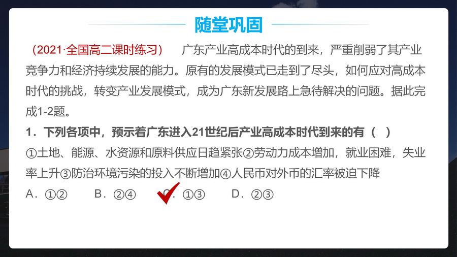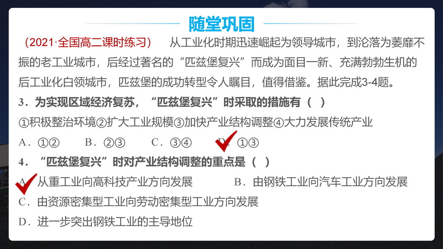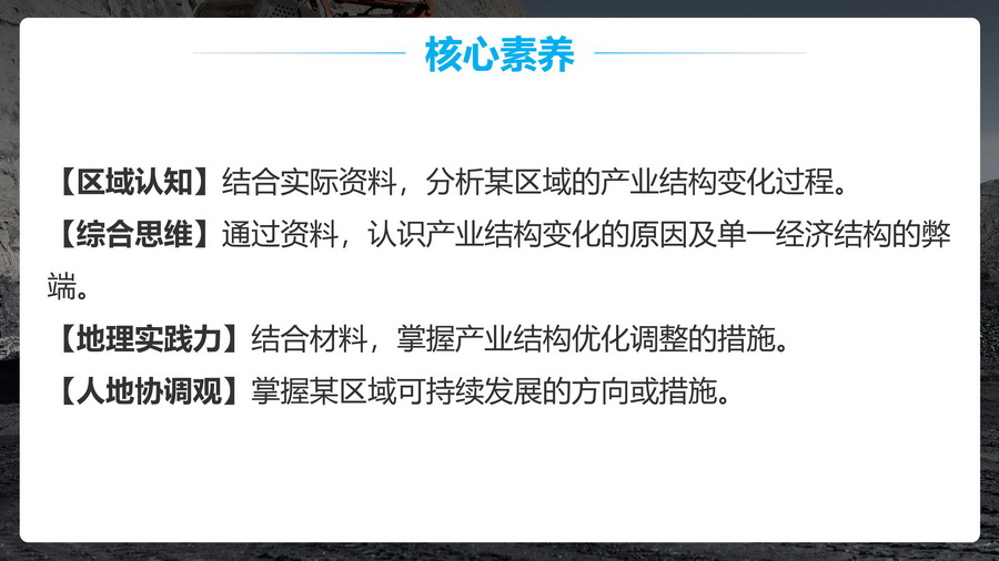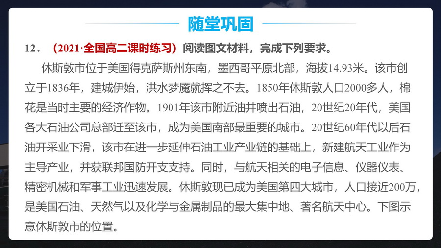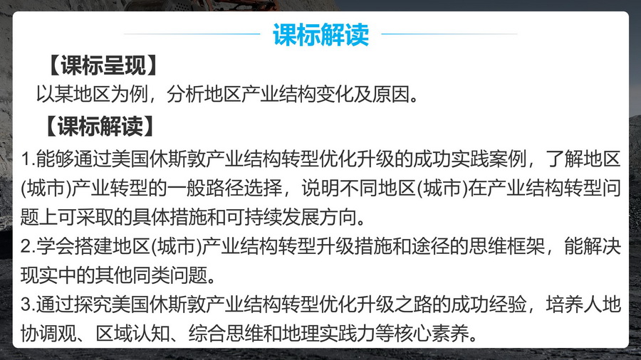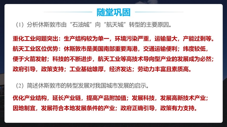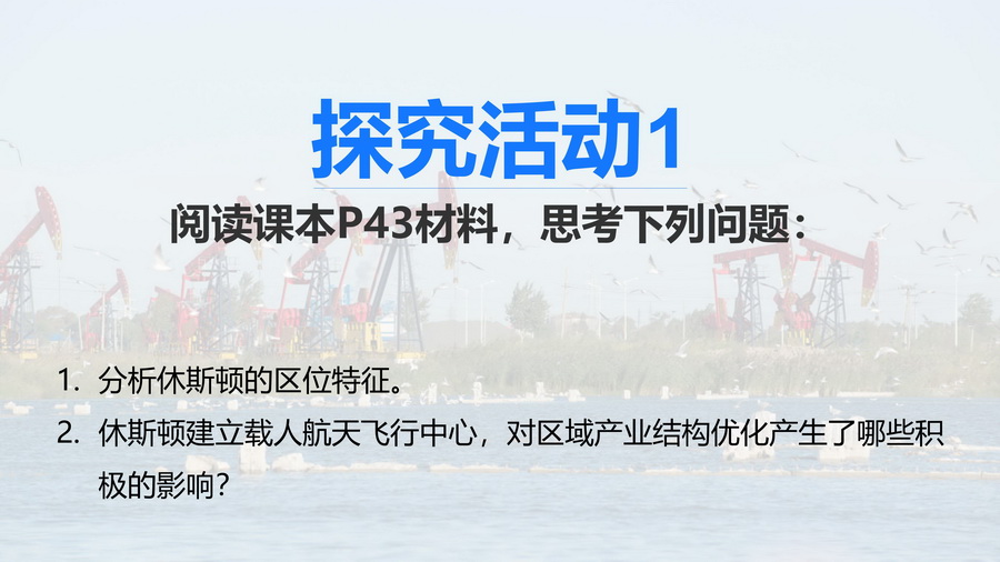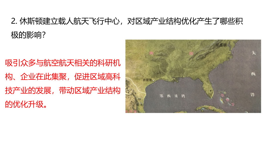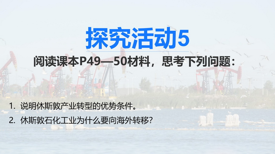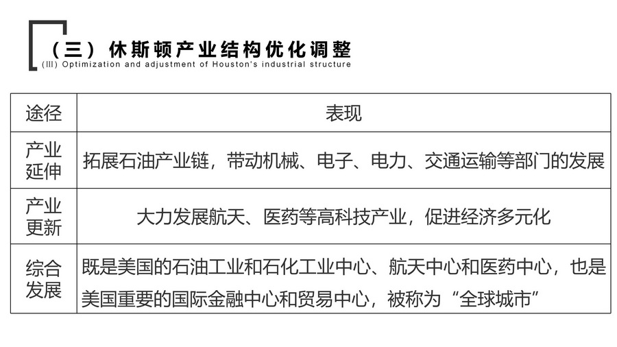 过渡:休斯顿单一经济结构弊端显著,怎么办?较自然的引出下一个知识点——产业结构优化调整。