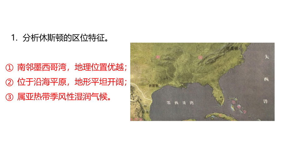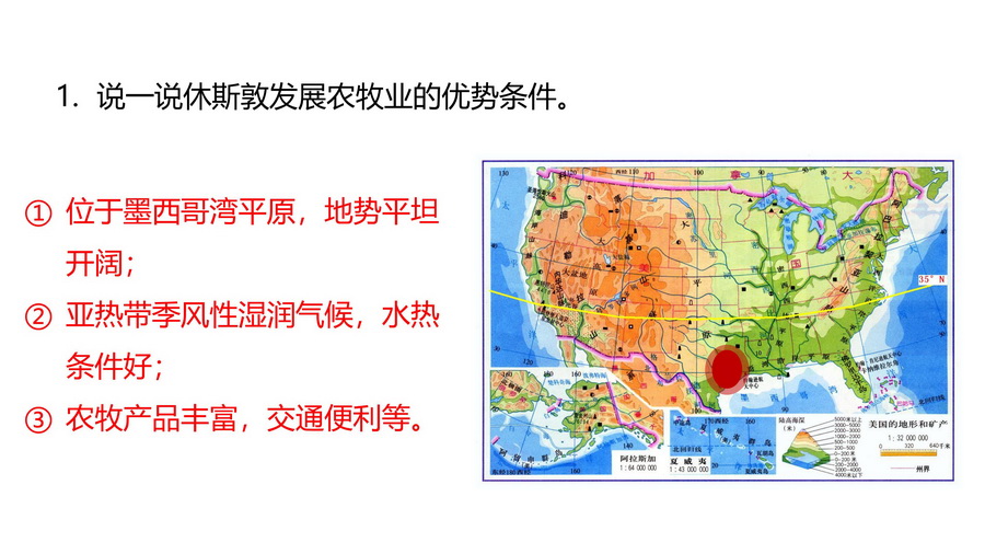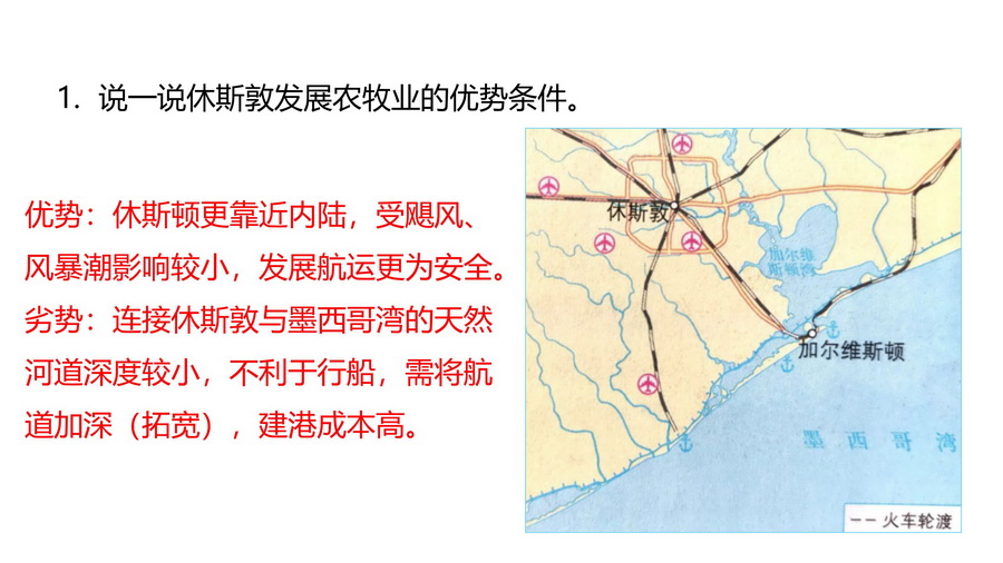 1.说一说休斯敦发展农牧业的优势条件。