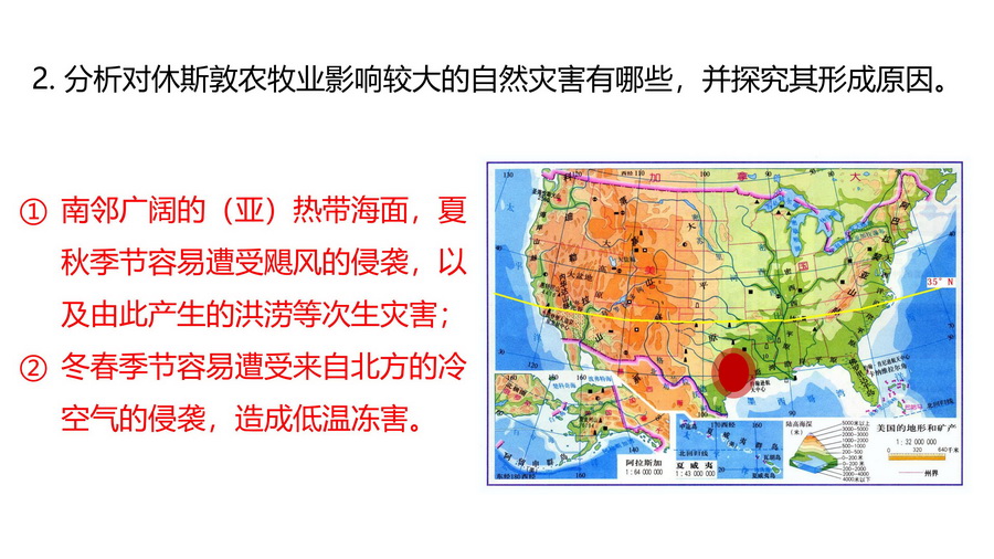 2.分析对休斯敦农牧业影响较大的自然灾害有哪些,并探究其形成原因