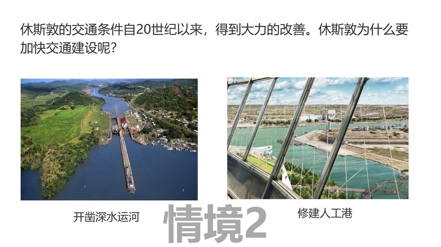 设计意图:休斯敦的飞速发展离不开交通条件的改善,特别是休斯敦替代加尔维斯顿成为墨西哥湾沿岸的重要海港更是休斯敦大发展的助推剂。引导学生了解休斯敦港口建设及其对当地石油工业发展的深远影响。