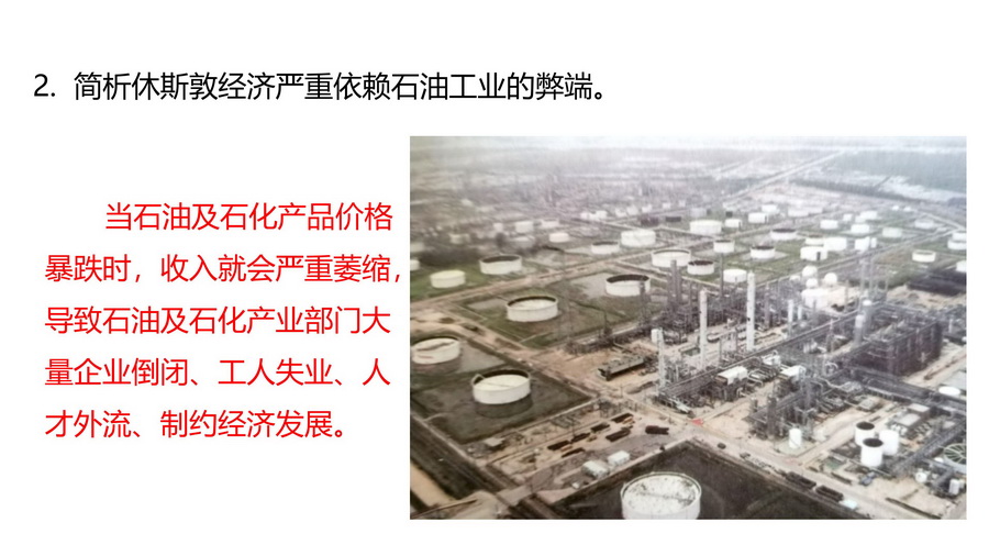 2.简析休斯敦经济严重依赖石油工业的弊端。