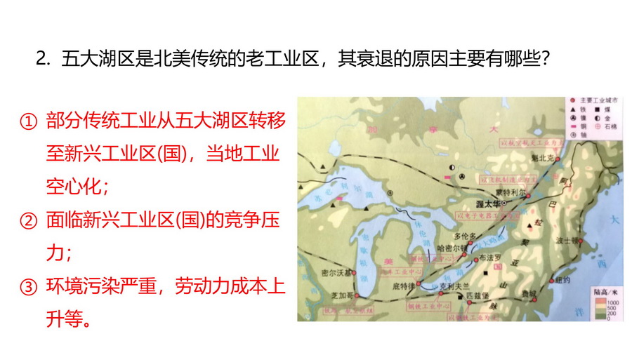 2.五大湖区是北美传统的老工业区,其衰退的原因主要有哪些?