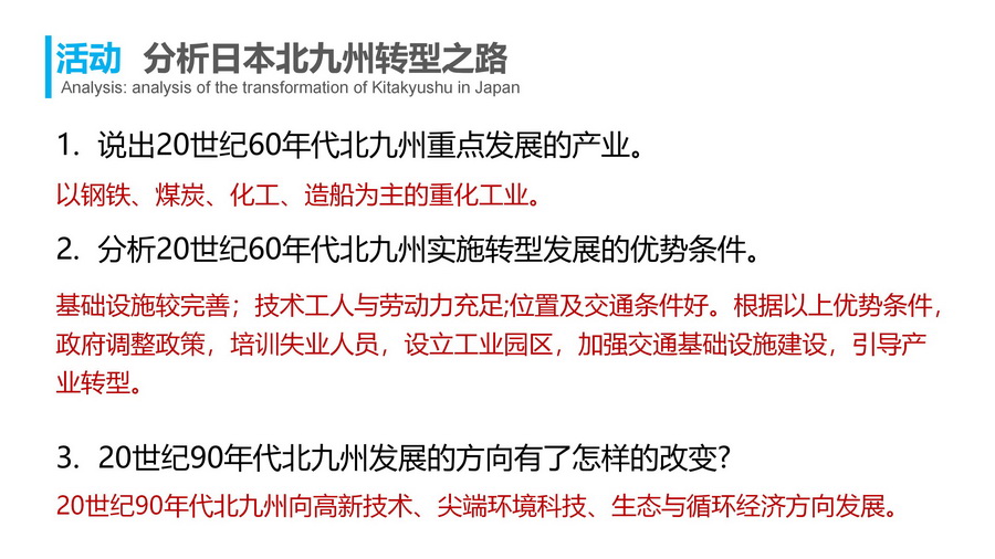 活动:分析日本北九州转型之路