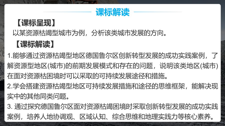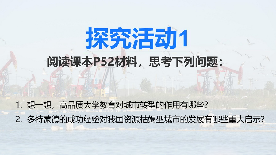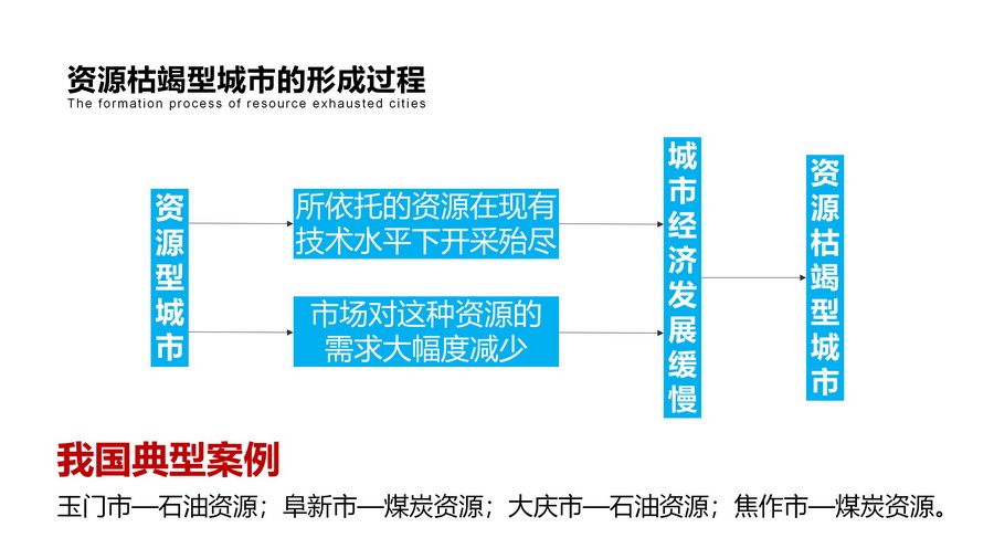 1.设计形象,展示资源枯竭型城市的具体案例,感悟到枯竭型城市需要转型的问题。