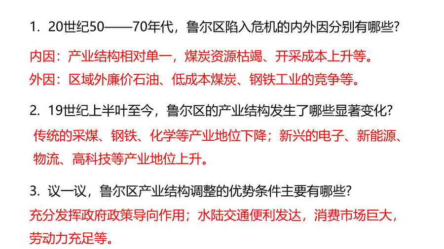 设计意图:进一步深化对鲁尔区创新转型发展之路的认识。