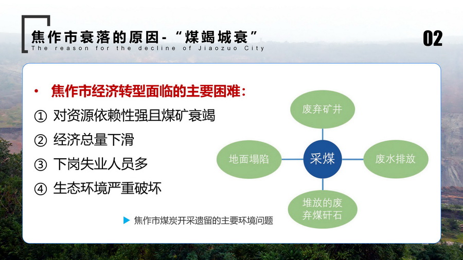 这些城市成为一个个让人羡慕的优质煤炭王国,城市经济也得到快速发展。然而多年对煤炭的过度开发使用,也导致当地生态环境破坏严重,资源面临枯竭。这些城市未来的路在何方?怎样谋求发展?