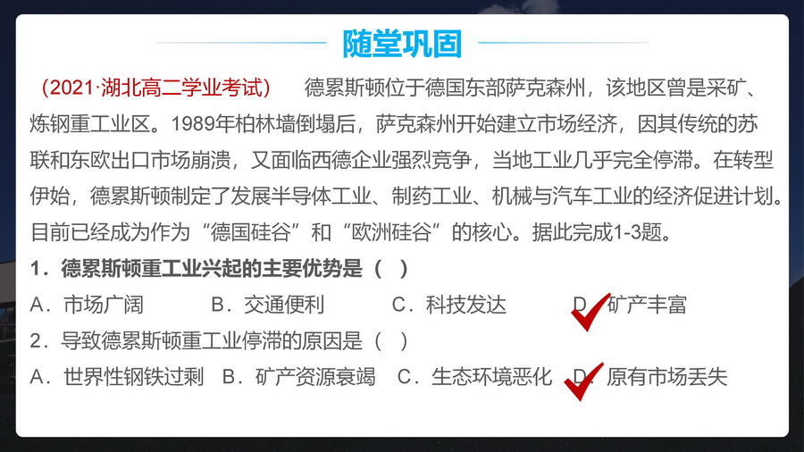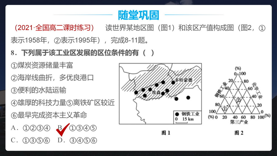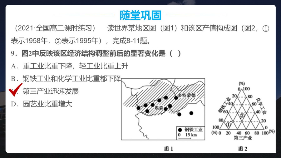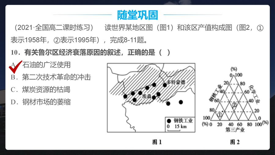 设计意图:多特蒙德在面临资源枯竭困境时所经历的转型发展之路是整个德国鲁尔区可持续发展的缩影。该探究能够为系统学习德国鲁尔区产业转型之路起到很好的铺垫作用。