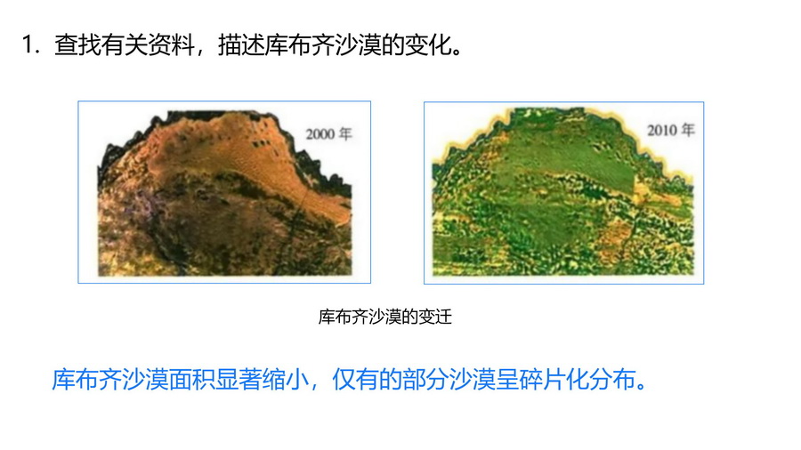 查找有关资料,描述库布齐沙漠的变化。