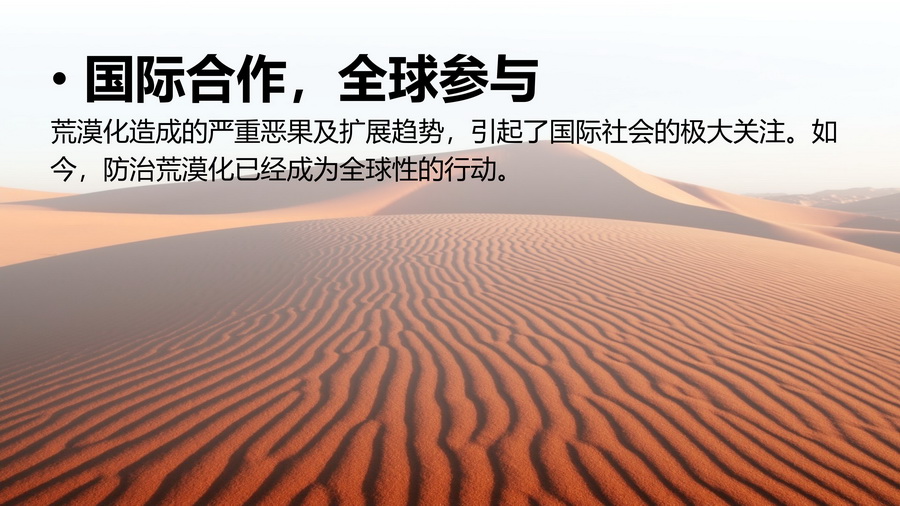 展示国际合作,全球参与荒漠化防治。