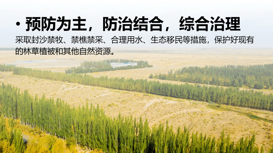 以图片,案例,思维导图等展示面对荒漠化,坚持预防为主,防治结合,综合治理。