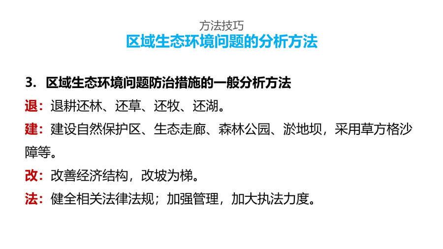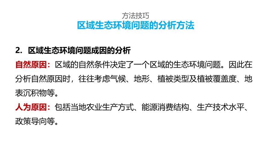 5.通过前面的活动和探究,结合教学内容,总结归纳分析区域生态问题的方法技巧。